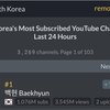 최근 24시간 동안 한국에서 가장 많이 구독한 백현 유튜브
