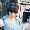 김지융 이 뽀짝한 핑크옷입고 장미 들고있어