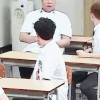 시우민 책상에 앉아서 두리번 두리번>.<