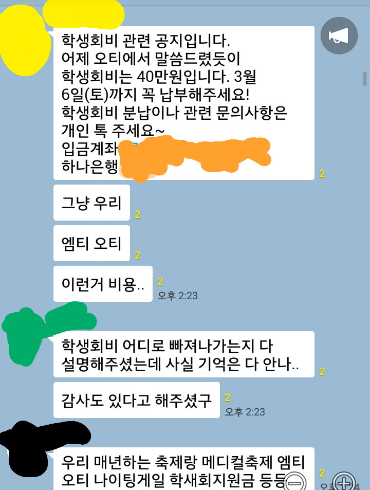 모 대학 간호학과 학생 회비