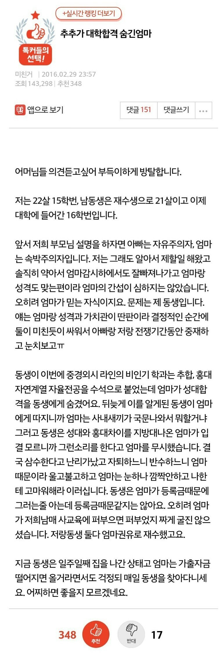 밤놀닷컴 꿀잼유머 - 대학 추가 합격을 숨긴 엄마