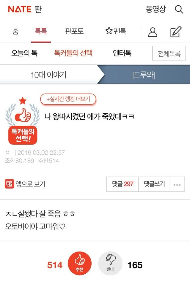 나 왕따 시켰던 애가 죽었대