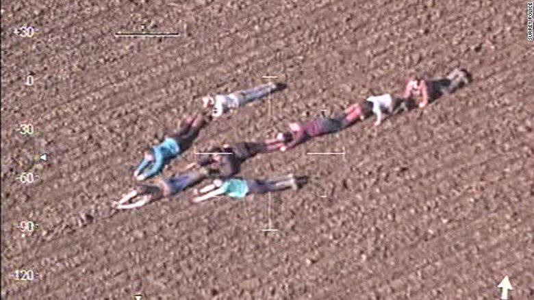 인간 화살표로 경찰헬기에게 용의자의 도주방향을 알리는 아이들