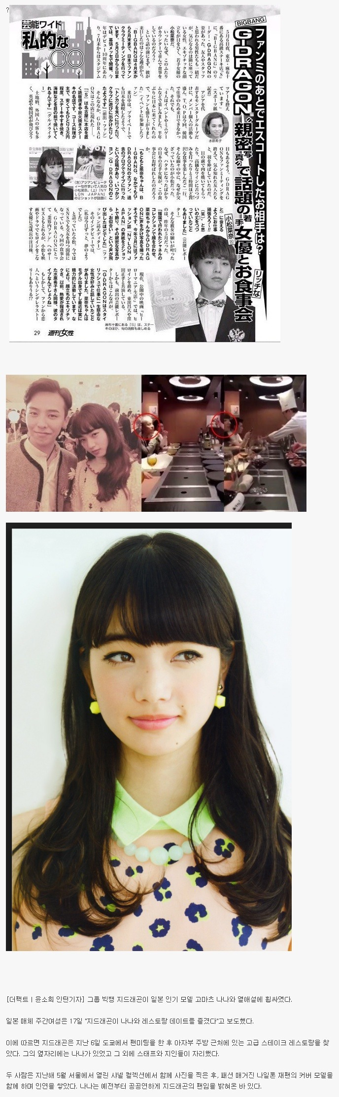 지드래곤과 열애설 난 일본 여배우