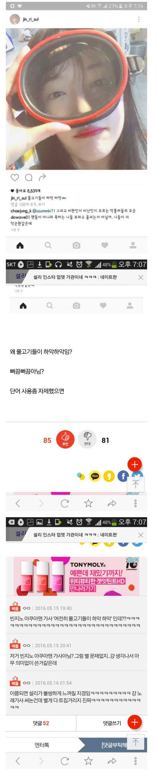 설리 때문에 불편