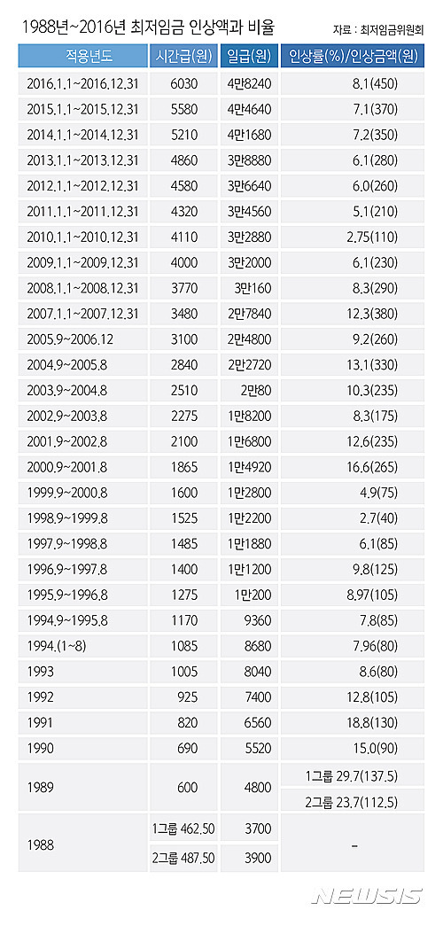 1988~2016 최저 시급