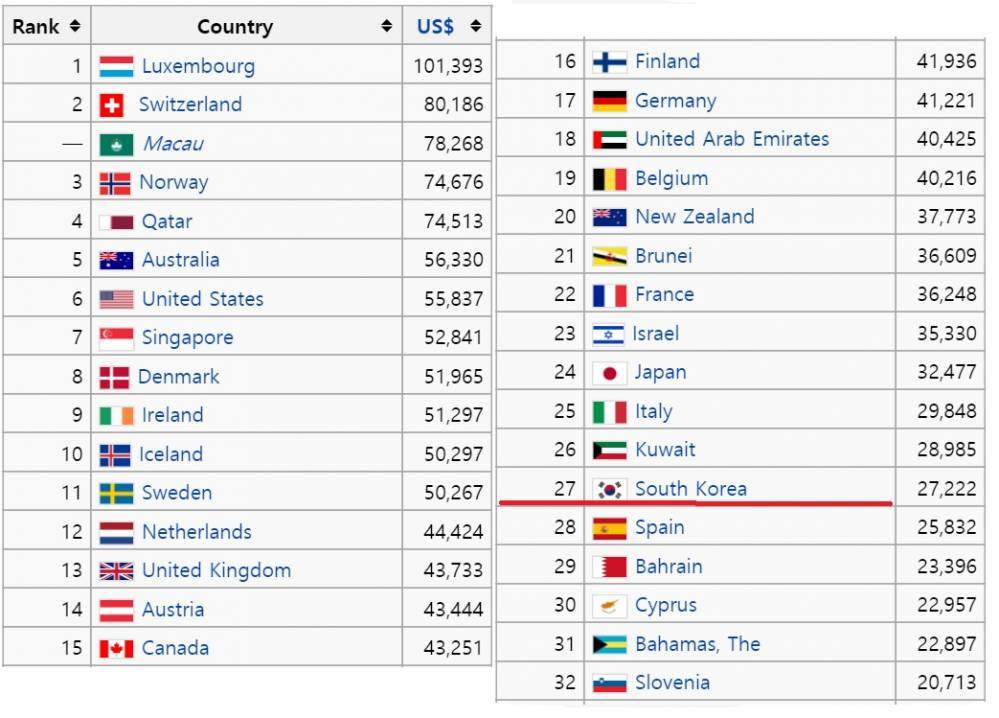 1인당 GDP 순위