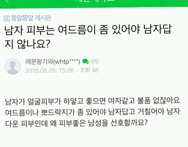 남자 피부는 여드름이 좀 있어야