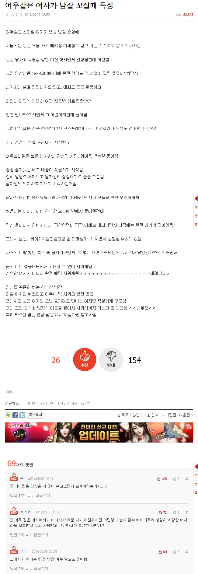 여우 같은 여자가 남자 꼬실 때 특징