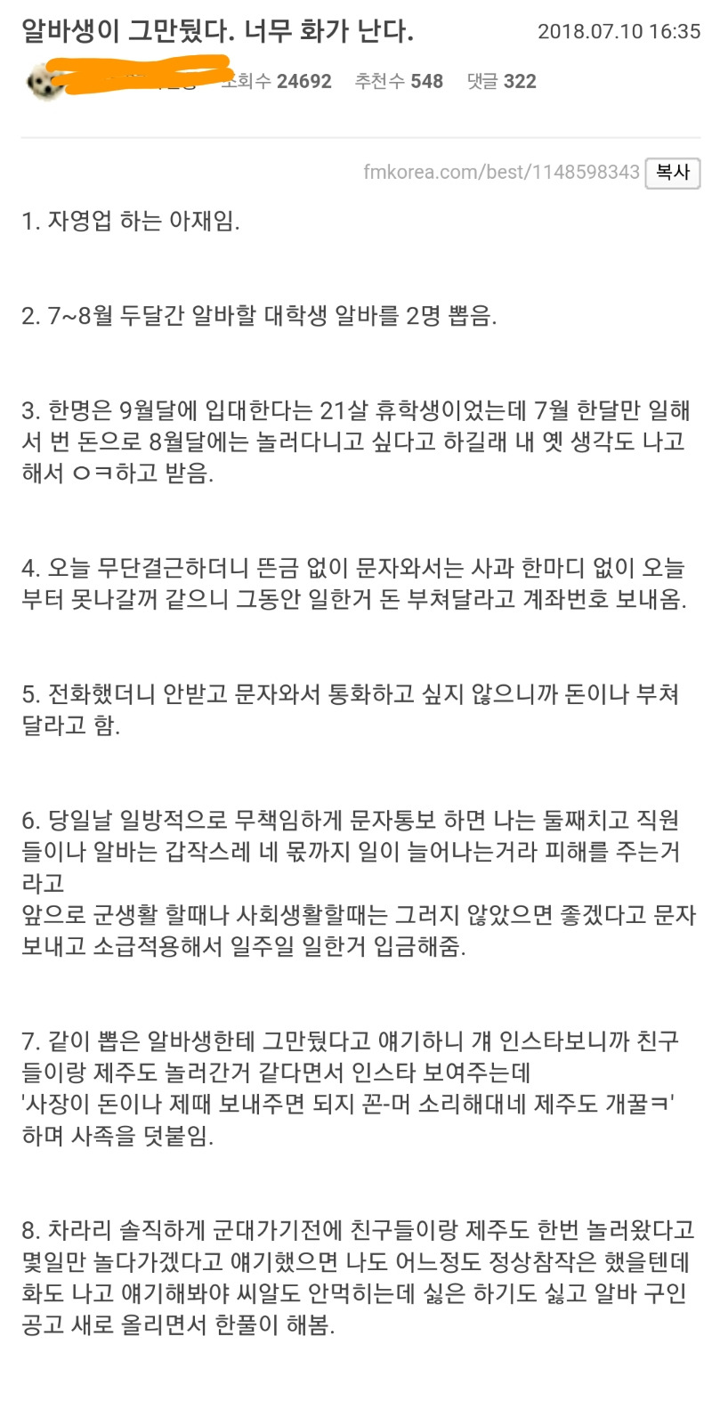 알바생이 그만뒀다, 화가 난다.