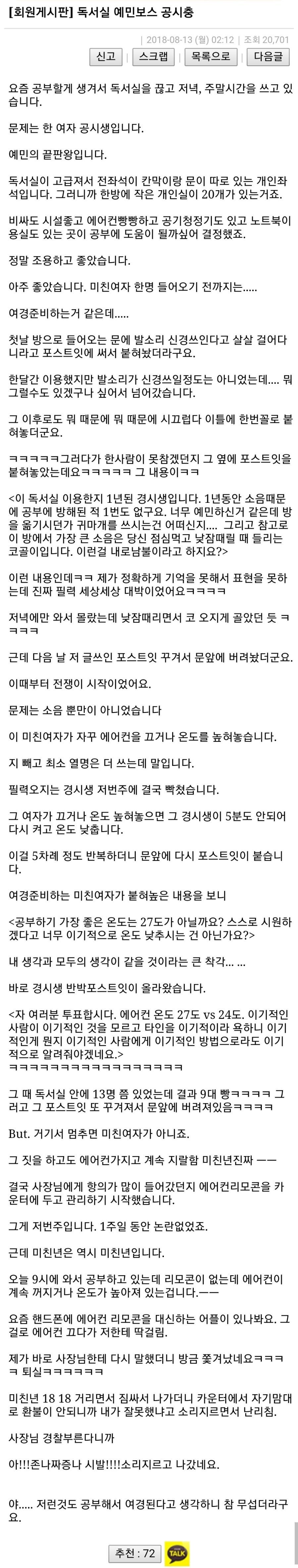 독서실 예민 보스 공시충