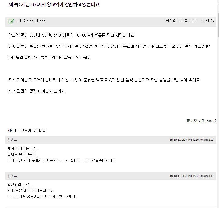 분유 먹고 자란 아이들의 특성
