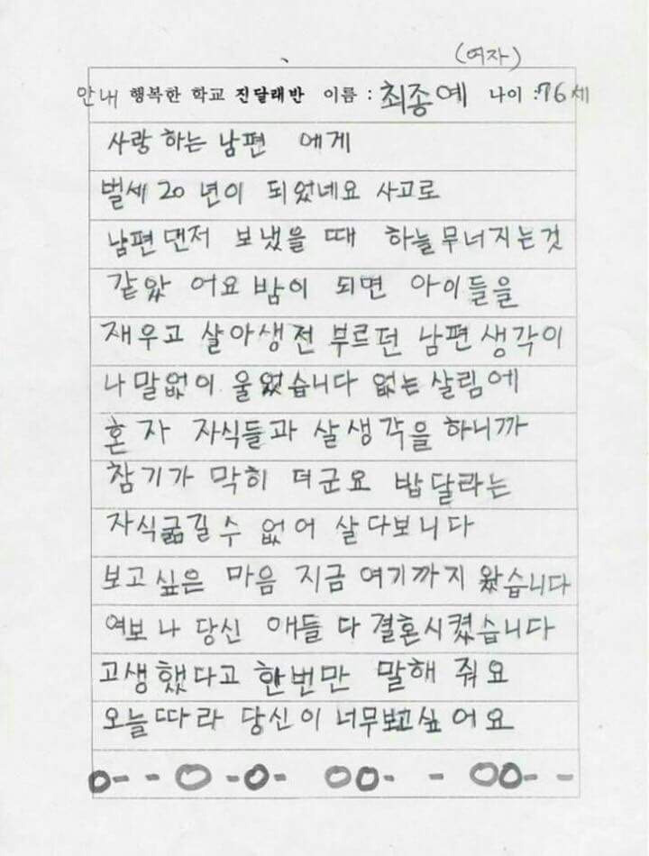 먼저 세상을 떠난 배우자를 향한 편지