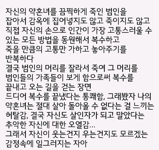 이병헌 연기는 한번 보면 뽕맞은거마냥 카타르시스 쩔게 느껴져서 안봐지지가 않음.. 다른 배우들이랑 너무 다르게 연기함..