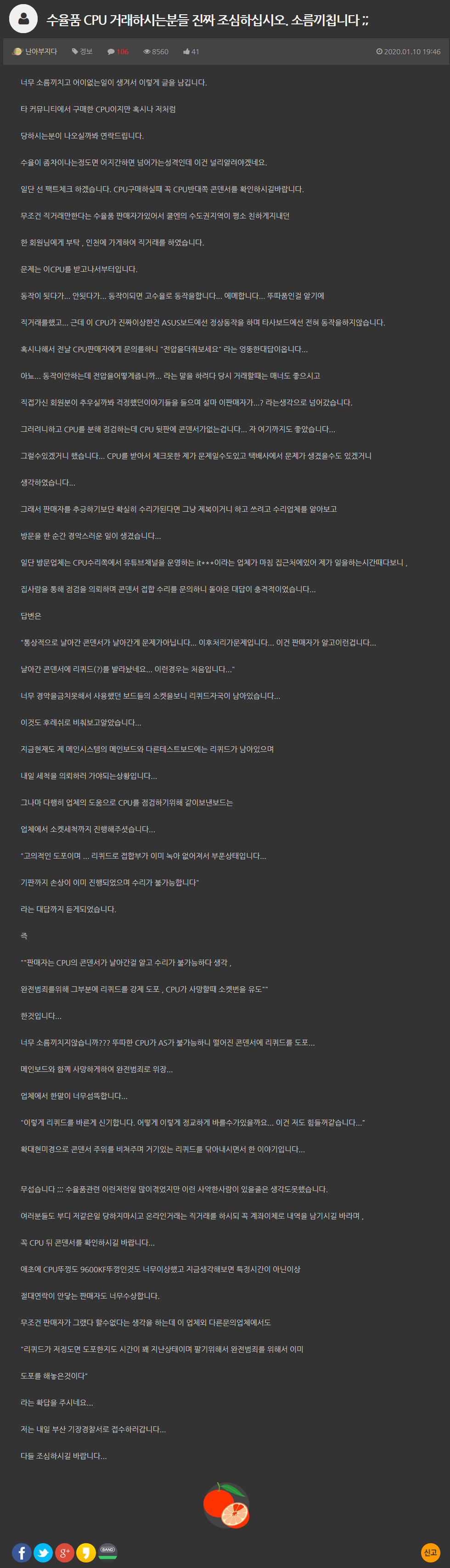 공포의 CPU 중고거래