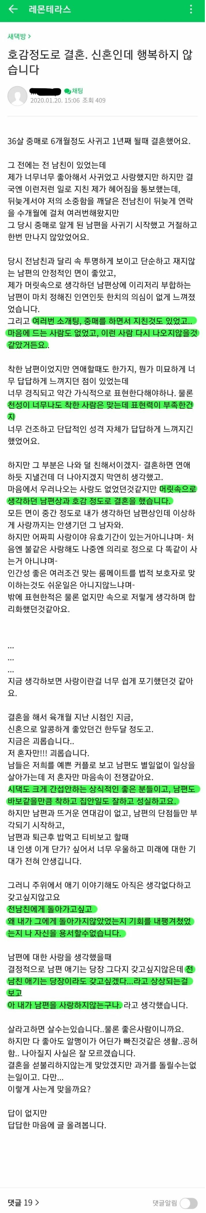 신혼인데 전남친에게 돌아가고 싶은 여자