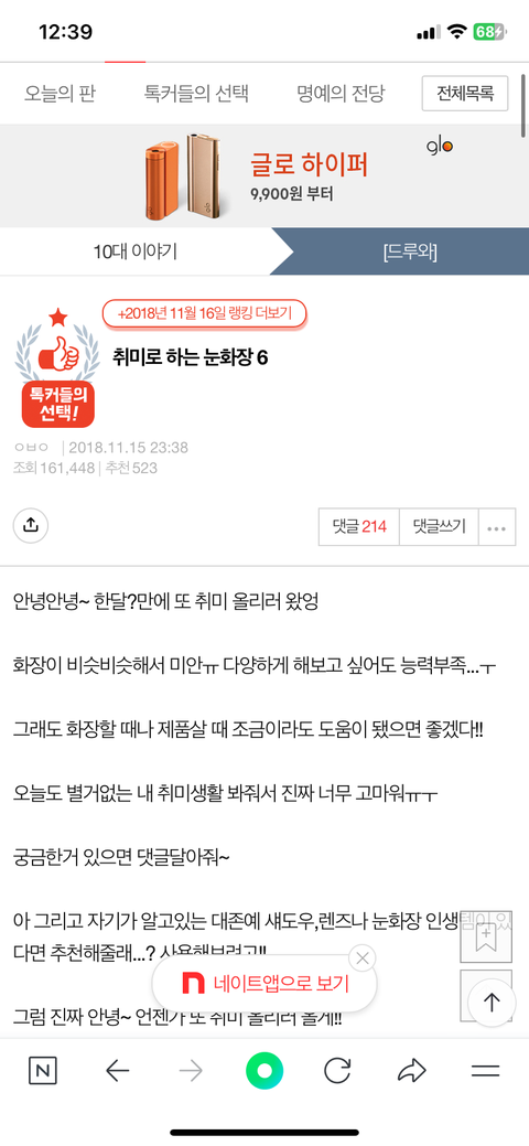 18년도 글인데 화장 잘하고 눈도 예뻐서 글 올릴 때마다 톡선 가고 그랬었음ㅋㅋ 지금 뭐하고 지내려나
