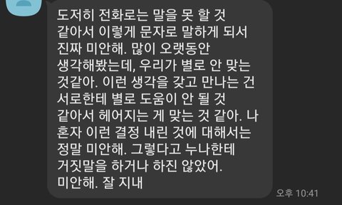 걔한테도 사실 책임이랑 우선순위 생기게 되는 깊은 관계가 무서웠다고 계속 두드려줘서 고마웠다고 까지 했는데