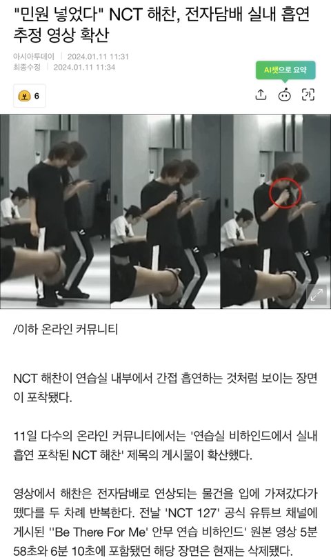 해찬 실내흡연 점점 기사뜨기 시작하뉴