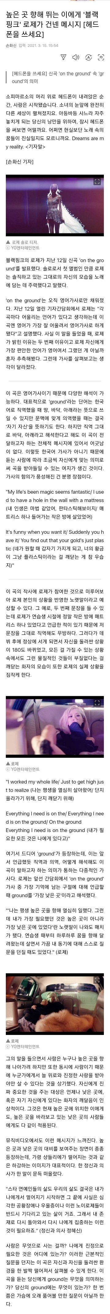 로제 온더그라운드 관련 기사인데 너무 좋다