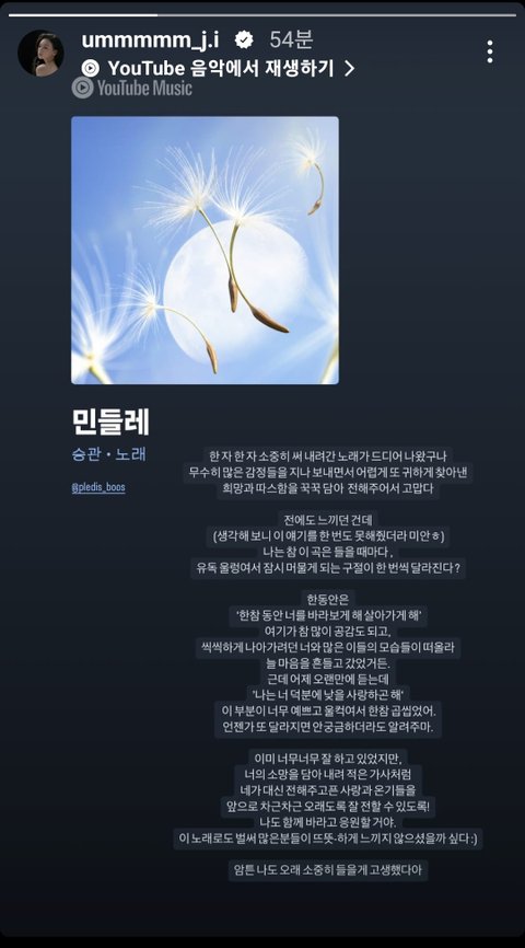 승관 민들레에 대한 엄지 코멘트 진짜 감동..