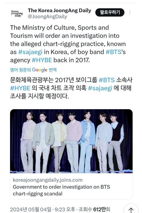 문체부 사재기 조사 소식이 트윗에도 떴나 봄 타돌 머리채 잡기 역시 빠지지 않음 https://theqoo.net/square/3216342421 https://theqoo.net/square/3216234262 65104