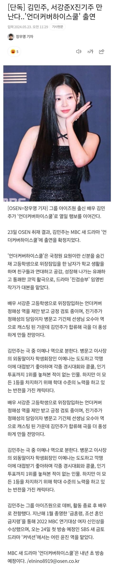 김민주, 서강준X진기주 MBC 언더커버하이스쿨' 출연 내년 초 방영예정