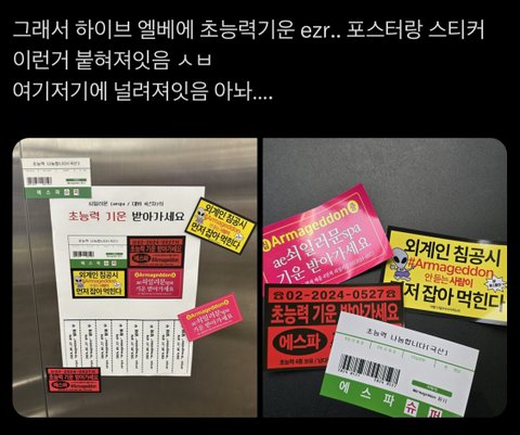 하이브 엘베에서 발견된 에스파 홍보 스티커ㅋㅋㅋㅋ