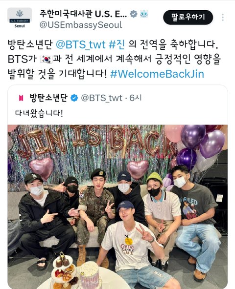대사관에서도 축하받는 대슈스지만 너무 귀여움