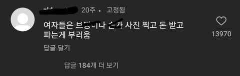 근데 한남들 저런거보면 전체적으로 잠재적 게이같음 저런식으로 여자 질투하고 몸파는거 부러워하는거 ㄹㅇ게이식 마인드인데 좀 신기함