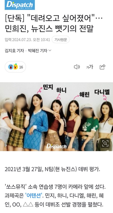 추·반뉴진스애들도 이제 순수하게 안보임 몰랐을까? 다알고있었겠지