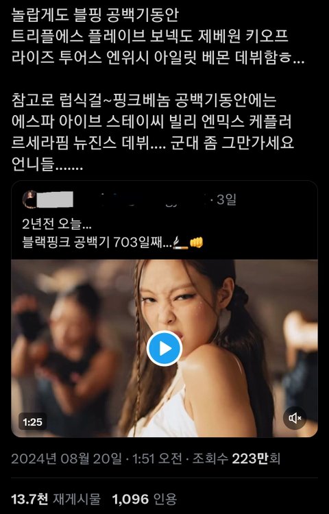 근데 블핑은 항상 신선함 화제성이 안 죽는 느낌