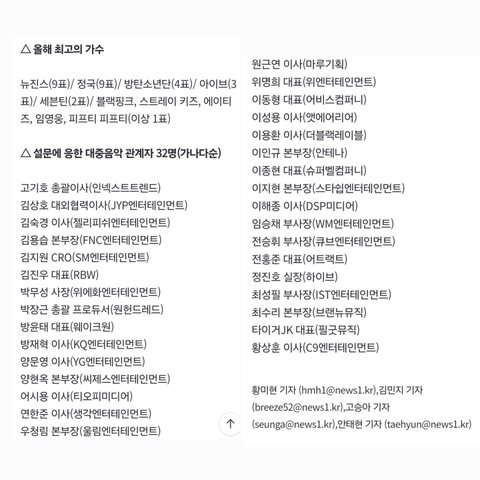 작년 연말에 각기 다른 회사 소속 관계자들이 뽑은거라는데 엔터업계 관계자가 인정한거라 더 의미 있는듯