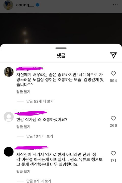 난 뉴진스 하니 는 관심없고 한강작가꺼 봤는데