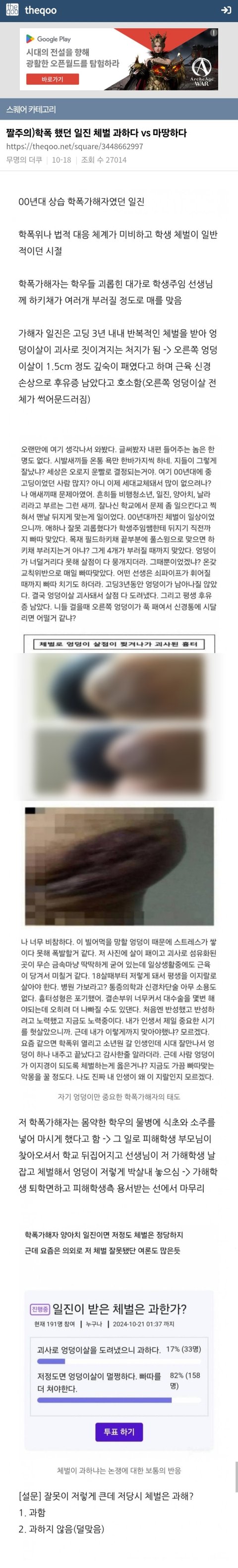 짤주의)학폭했던 일진 체벌 과하다 vs 마땅하다