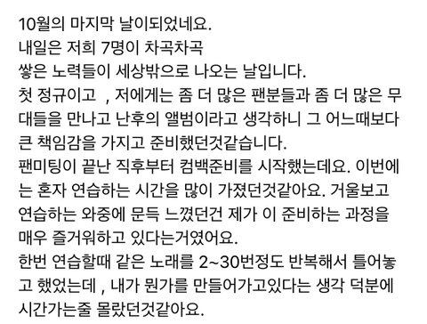 컴백을 하루 앞두고 위버스에 장문의 편지가 올라옴