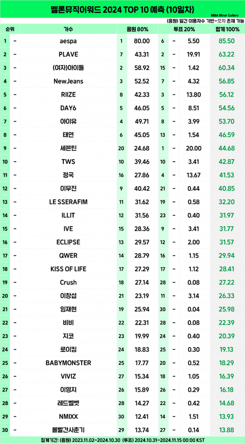 멜론뮤직어워즈 탑텐 플레이브 2위래 대박