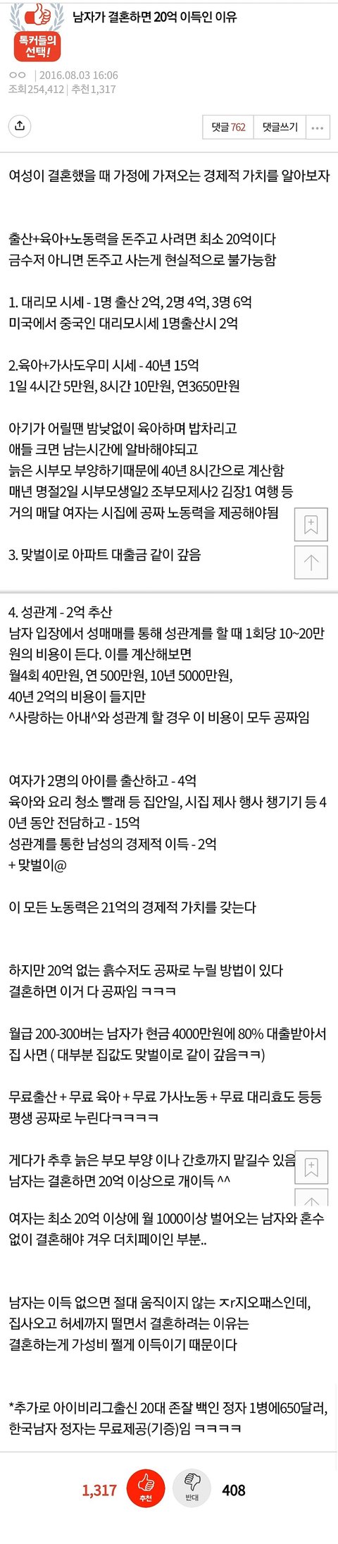 결혼은 여자가 21억원 이상 압도적 손해이기 때문에 문가비를 배려해서 특별히 결혼하지 않아준 스윗불꽃페미 끝판왕 남페미 스윗한남 정우성은 잘못이 없다!! 욕하지 마라!! 하라는대로 다해줬잖아!!