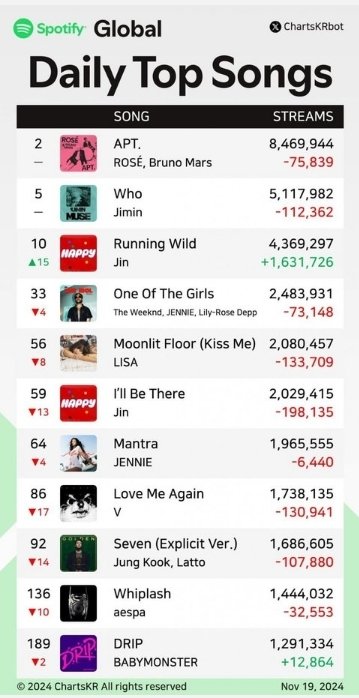 빌보드용 다운뿐 아니라 스포티도 합산되는거