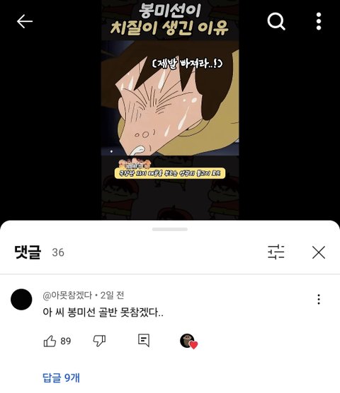 짱구 쇼츠에서 이딴 댓글 보면