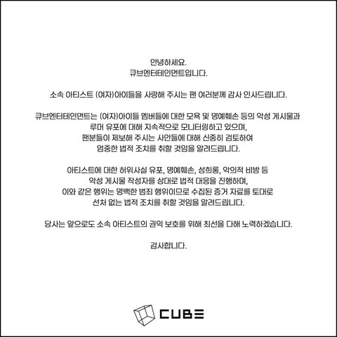 큐브는 전소연이랑 큐브소속 아티스트들 관리 똑바로 해줬으면..