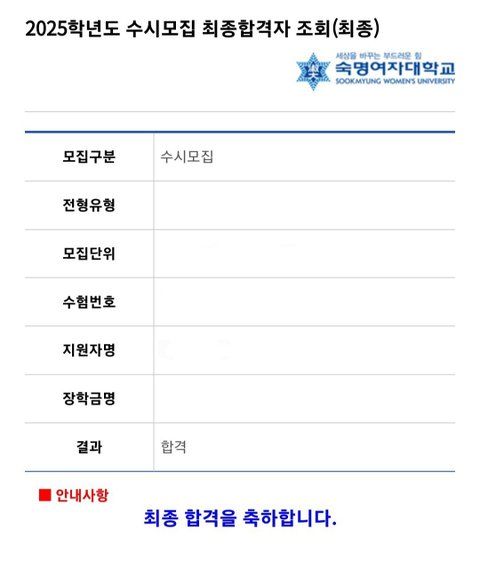 학과 이름은 안밝히겠지만 숙명여대 간판학과 붙었다