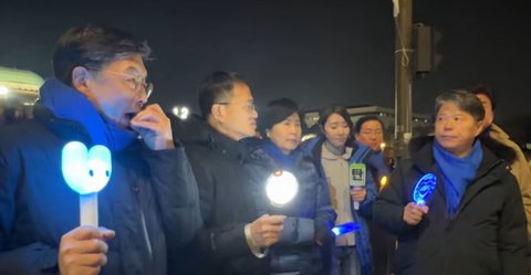 국회의원들 응원봉 들고있는거 너무웃김