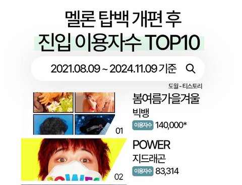 멜론 탑백 개편후 이용자수 빅뱅 1위ㅋㅋㅋ