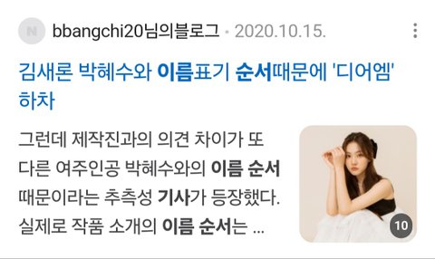 배우들 뿐만이 아니고 연예인들 나열되는 이름순서가 사실상 연예인으로서의 가치,인기 이렇게 받아들여질 수 있어서 곧 연예인들의 자존심이라고 하잖아 배우들은 그런 것 때문에 작품 엎어지는 경우도 허다하다고 하고 하물며 털털한 전소민조차도 이름순서가 중요하다,뒤로 밀리면 기분 나쁘다 이렇게 말한적 있음