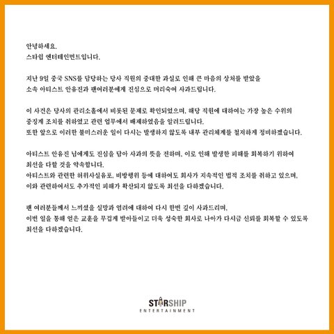스타쉽이 아니라 장팬들이 사과하거나 장팬들의 수괴가 사과해야지