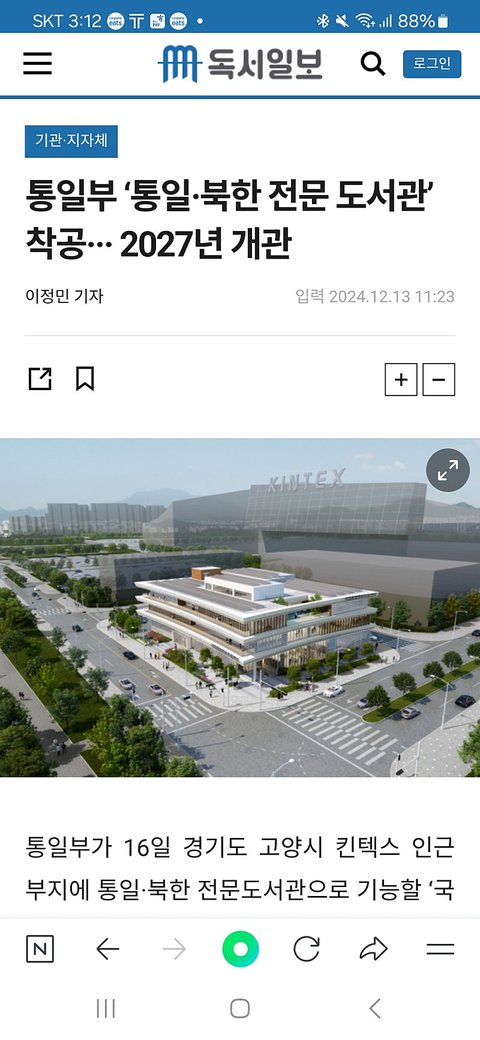 북한 통일 도서관이 들어온다는데