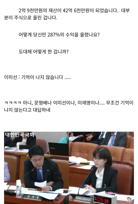 저는 그사람이요 그 장관후보자였는데 그 자식이 600백만원으로 3억6천 만든사람... 그냥 조용히 장관 되었더라구요 솔직히 도박을 해도 그렇게 못벌어요 특혜죠 진짜 재수없어