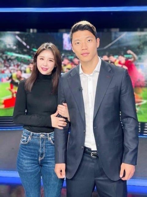 황희찬한테 가슴 밀착해서 사진 찍는 최아리 기상캐스터