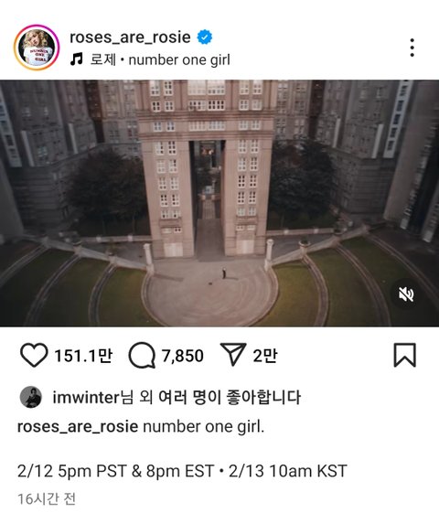 윈터 로제 게시물에 좋아요 눌렀넹